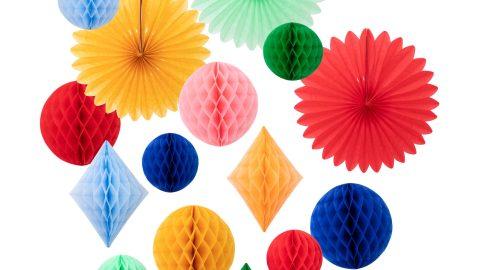 Om du gillar honeycomb dekoration då kommer du älska detta set. Det innehåller 3D honeycomb bollar, diamanter och solfjäder formar, i fina starka färger för att skapa en otrolig effekt.
